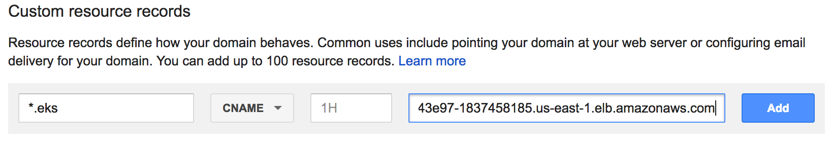 *.myekscluster.com would point to the Ingress hostname obtained earlier.