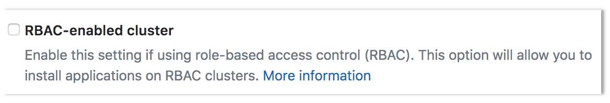 When connecting a cluster via GitLab integration, you may specify whether the cluster is RBAC-enabled or not. This will affect how GitLab interacts with the cluster for certain operations. If you did not check the "RBAC-enabled cluster" checkbox at creation time, GitLab will assume RBAC is disabled for your cluster when interacting with it. If so, you must disable RBAC on your cluster for the integration to work properly.